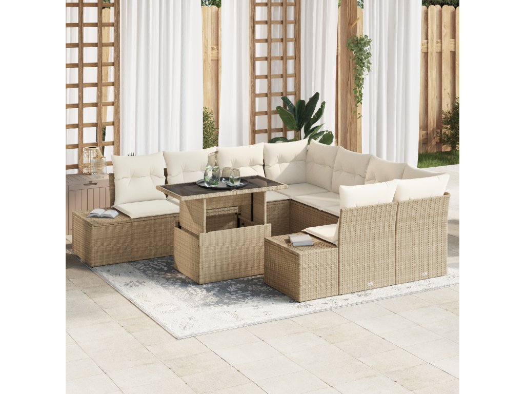 Sada zahradních pohovek 9 pcs Béžová a krémová polyratan