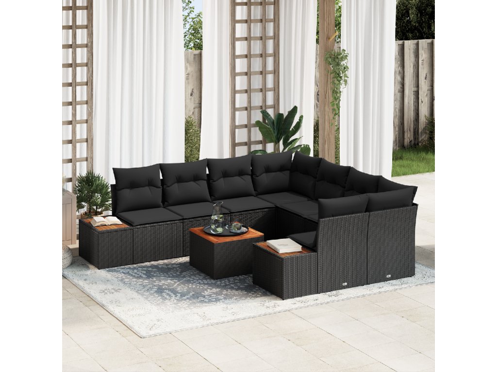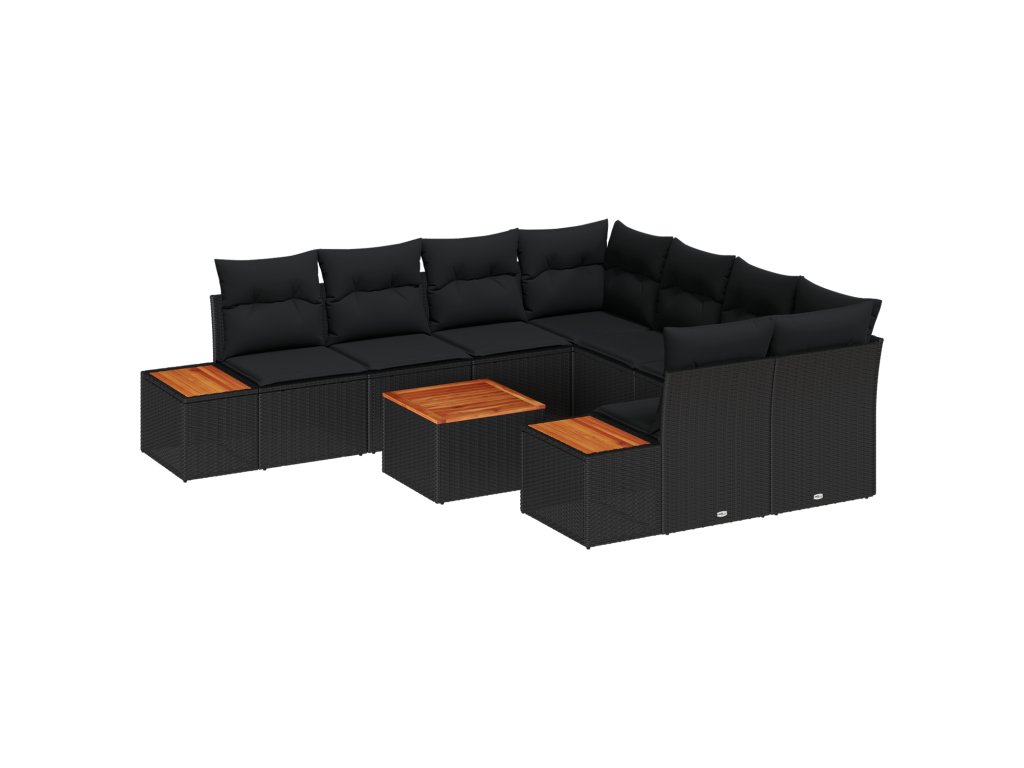 Sada zahradních pohovek s polštářem 9 pcs Černá Poly ratan