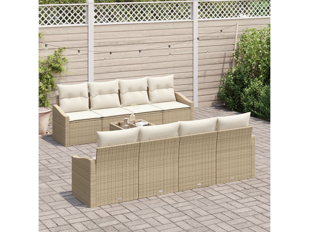 Set pohovek s polštářem 9 pcs Béžová a krémová polyratan