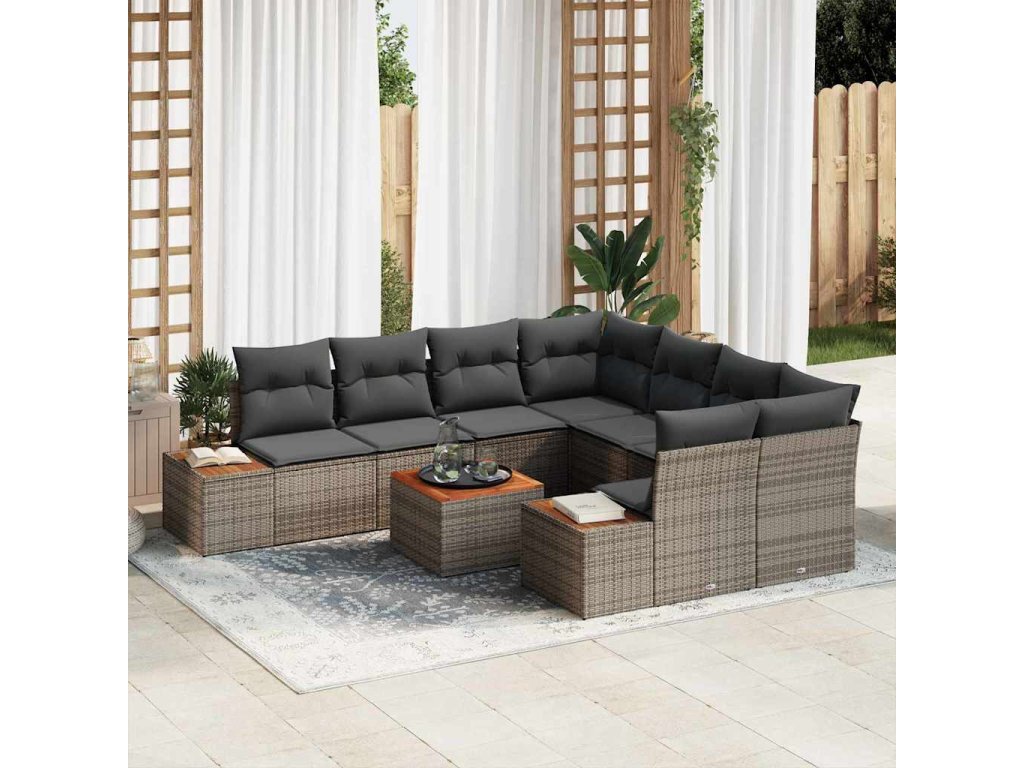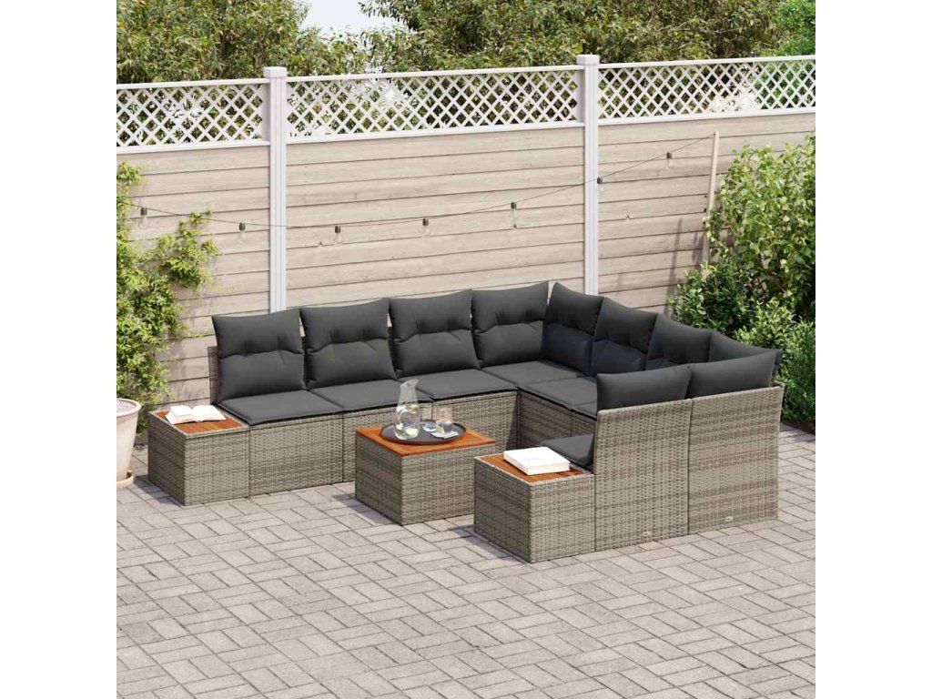 Sada zahradních pohovek s polštářem 9 pcs Šedá Poly ratan