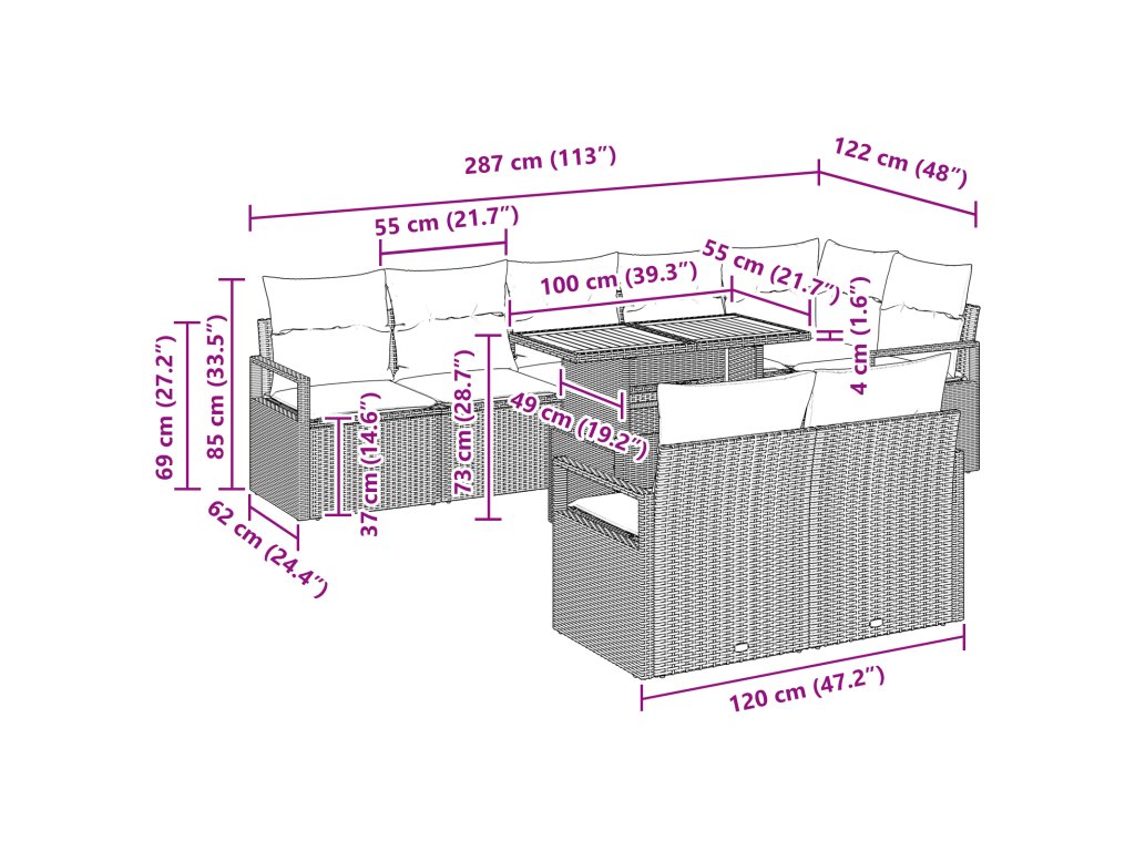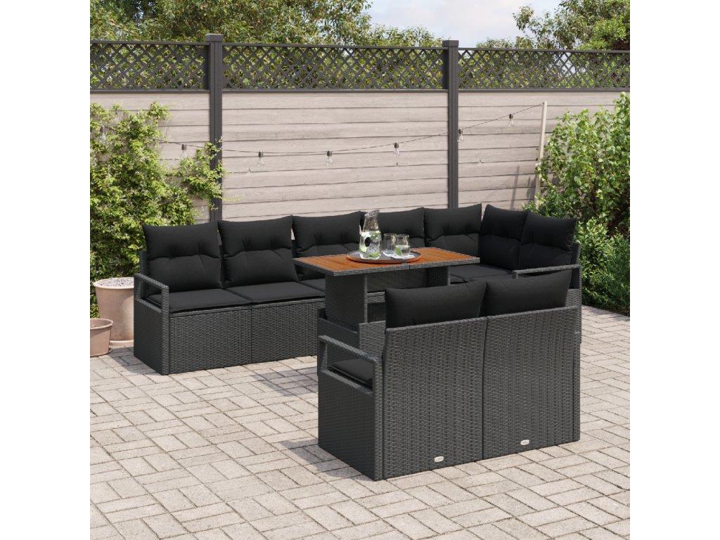 Složení materiálů: Harmonická směs Poly Rattanu, oceli a masivního akáciového dřeva se spojila a definuje tuto zahradní sedací soupravu. Navrženo tak, aby bylo odolné vůči UV záření, materiály zajišťují dlouhověkost, odolávají vyblednutí ze silného slunečního záření a zároveň uchovávají eleganci a funkci v průběhu času. Zakládající uspořádání sezením: Souprava obsahuje spojení křesel a rohových sedadel vybavených funkcí úložného prostoru. Každé sedadlo zahrnuje výplň z pěny a sedák s odnímatelnými, zipovými polstry pro snadnou údržbu a pohodlí. Funkční prvky: Navrženo s nastavitelným modulárním mechanismem, tato pohovka vyhovuje jak pohodlí, tak estetickým preferencím. Ručním přesunem sedadel mohou uživatelé flexibilně uspořádat svůj zahradní prostor jak pro velké setkání, tak pro intimní odpočinek. Integrované nastavitelné nožičky zajišťují stabilitu na nerovných venkovních plochách. Údržba venku: S odolnou konstrukcí se tato zahradní pohovka rozumně postaví proti živlům. Pro další ochranu použijte ochranný kryt, abyste ji ochránili před deštěm nebo extrémním slunečním zářením, což zajistí, že zůstane součástí vašeho venkovního prostoru i mnoho sezón. Komplexní montáž: Souprava je dodávána s jasnými, podrobnými instrukcemi pro montáž a vyžaduje minimální investici do nářadí, stačí účast dvou lidí a šroubovák k sestavení.- Barva: Černá a hnědá
