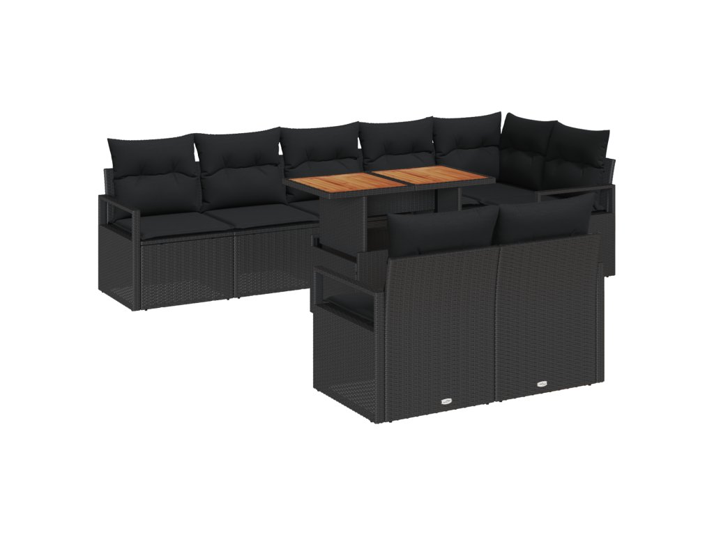 Sada zahradních pohovek s polštářem 9 pcs Černá a hnědá