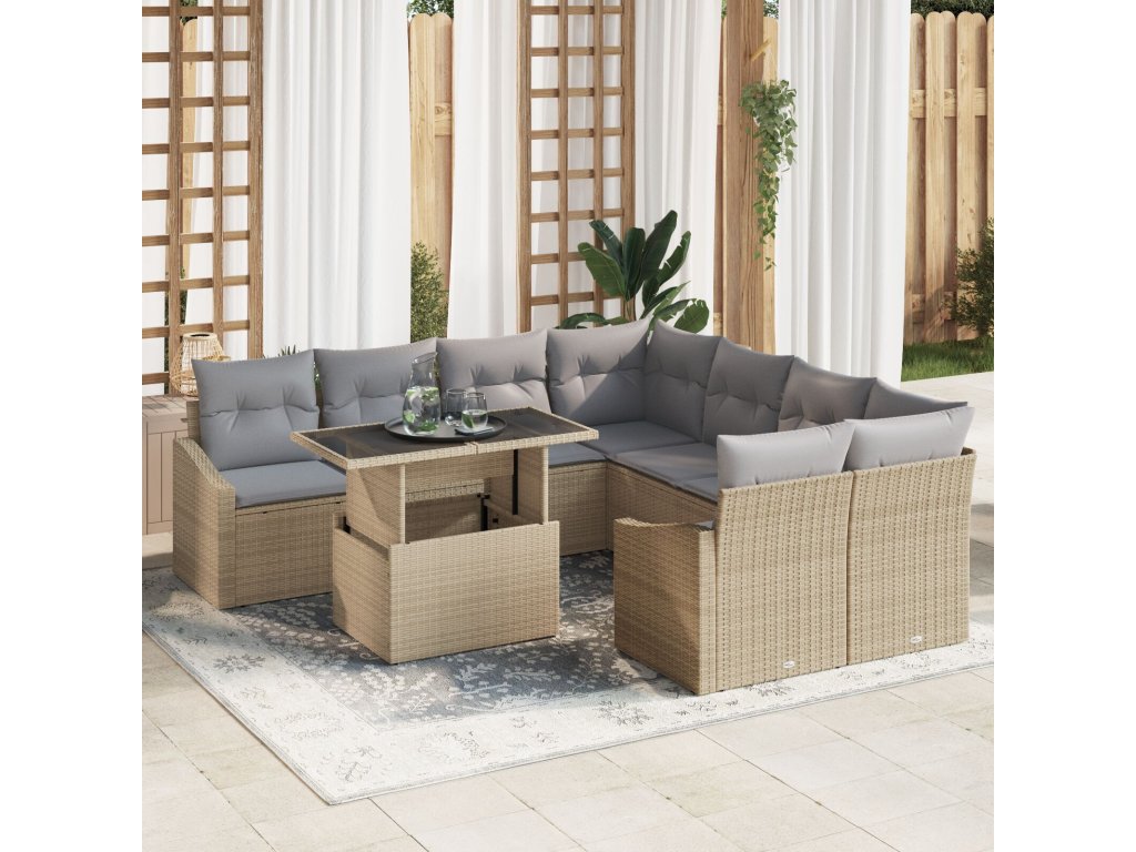 Sada zahradních pohovek 9 pcs Béžová a Světle šedá polyratan