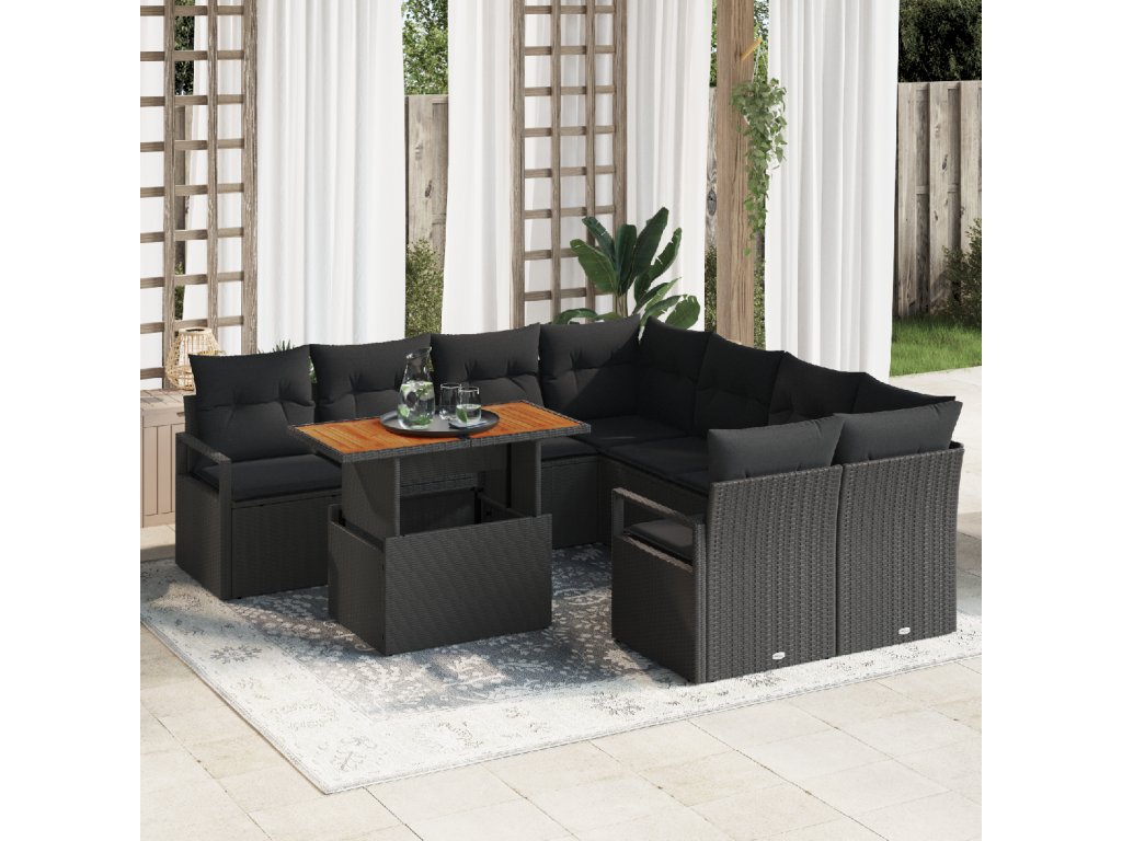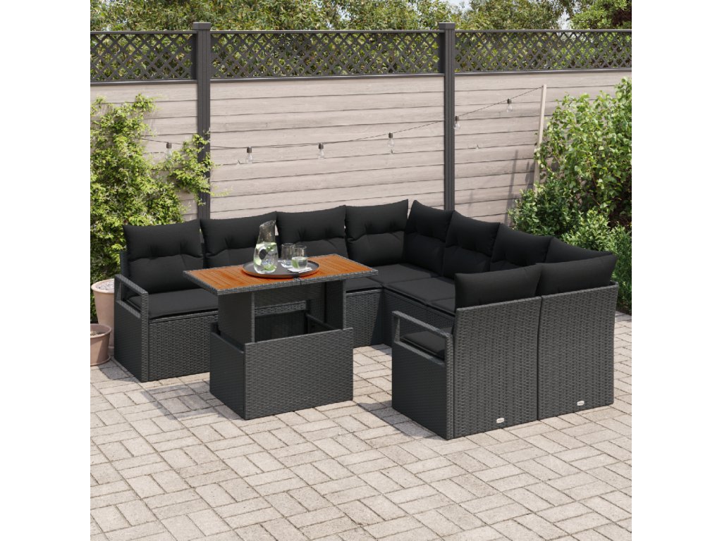 Zahradní jídelní souprava s polštářem 9 pcs Černá a hnědá