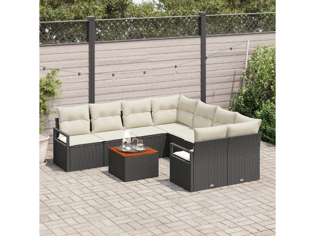 Sada zahradních pohovek s polštářem 9 pcs Černá Poly ratan
