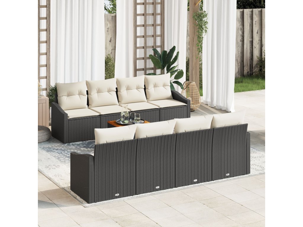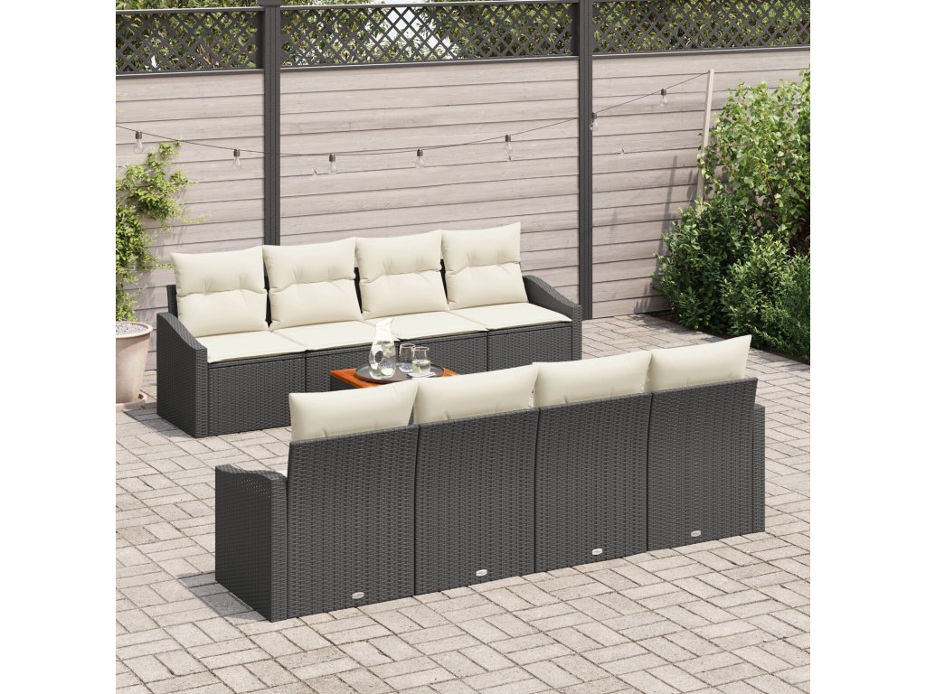 Sada zahradních pohovek s polštářem 9 pcs Černá Poly ratan