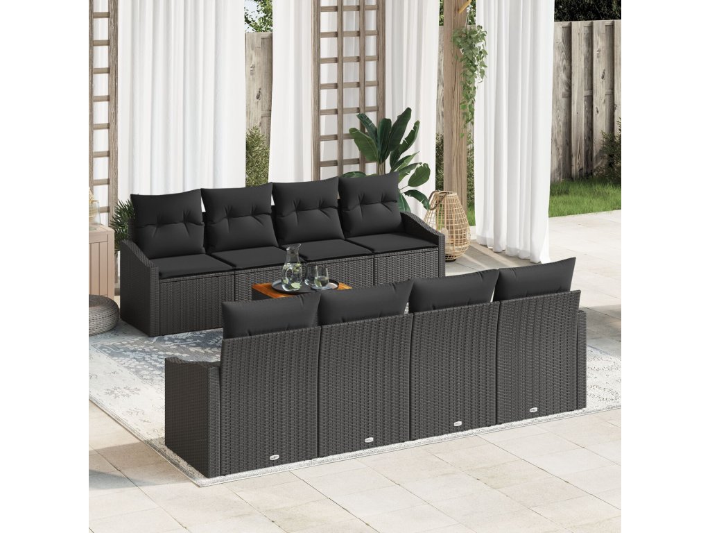 Sada zahradních pohovek s polštářem 9 pcs Černá Poly ratan