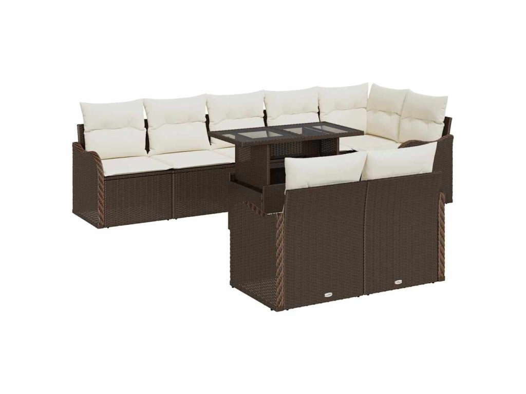 Sada zahradních pohovek s polštářem 9 pcs Hnědá Poly Ratan