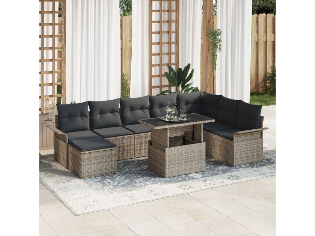 Sada zahradních pohovek s polštářem 9 pcs Šedá Poly ratan