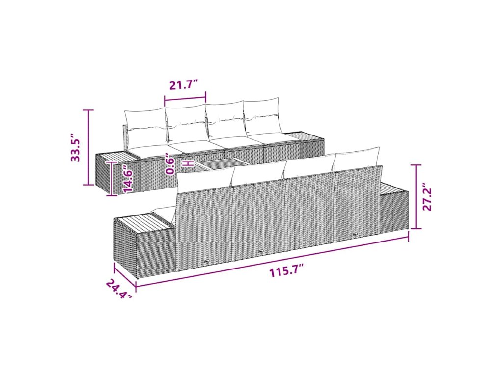 Zahradní pohovkový set je perfektní mix moderního stylu a praktičnosti, ideální pro venkovní užívání. Díky flexibilnímu modulárnímu designu se hodí do každého uspořádání zahrady nebo terasy. Čisté linie a odolná tkaná textura dodají eleganci, takže je skvělým místem na slunečné odpoledne nebo příjemné večery s přáteli.