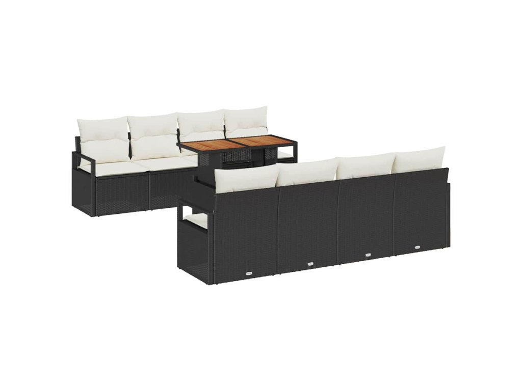 Sada zahradních pohovek s úložištěm 9 pcs Černá Poly ratan