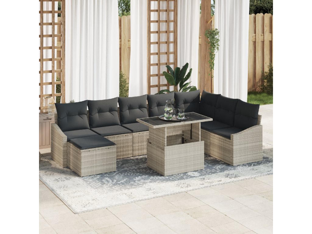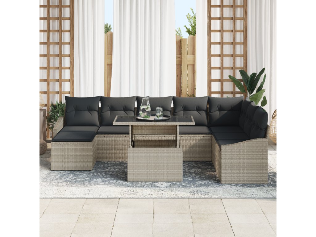 Set pohovek s polštářem s úložištěm 9 pcs Světle šedá polyratan