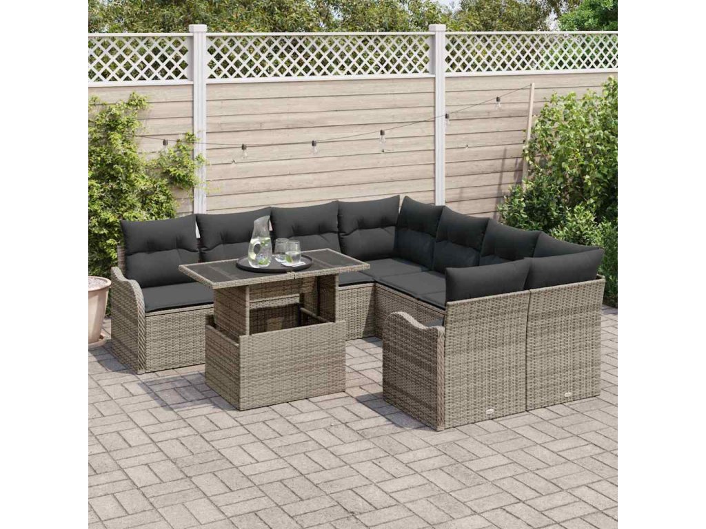 Sada zahradních pohovek s polštářem 9 pcs Šedá Poly Ratan