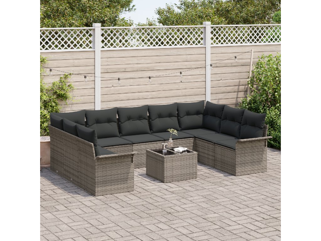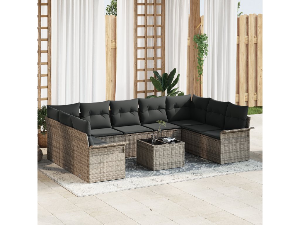 Sada zahradních pohovek s úložištěm 10 pcs Černá polyratan