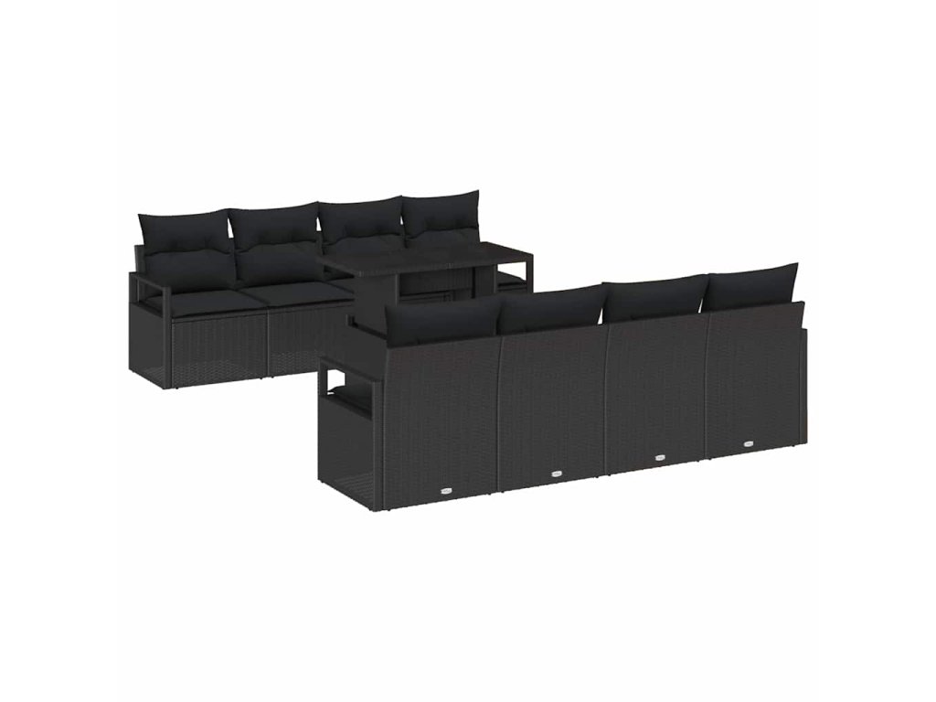 Sada zahradních pohovek s polštářem 9 pcs Černá Poly ratan