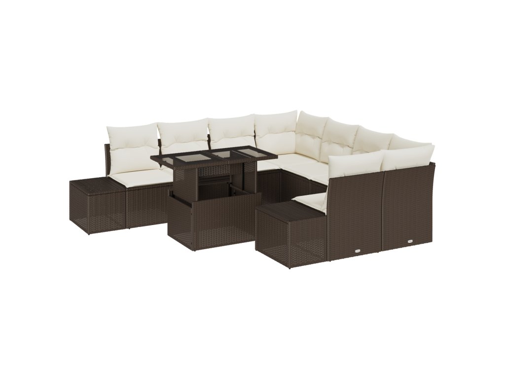 Set pohovek s polštářem 9 pcs Hnědá a krémová polyratan