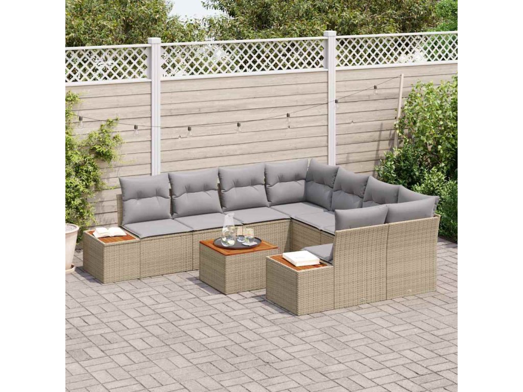 Sada zahradních pohovek s polštářem 9 pcs Béžová Poly ratan