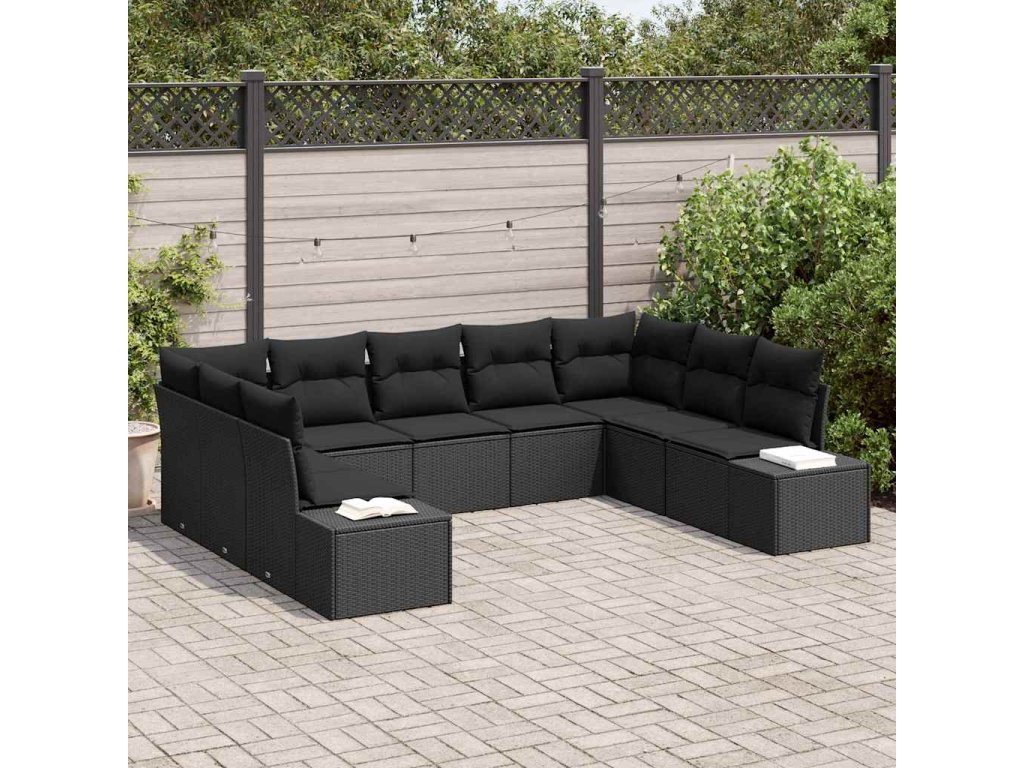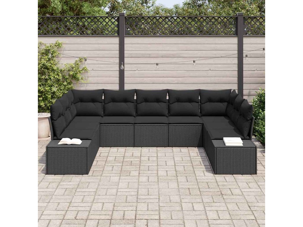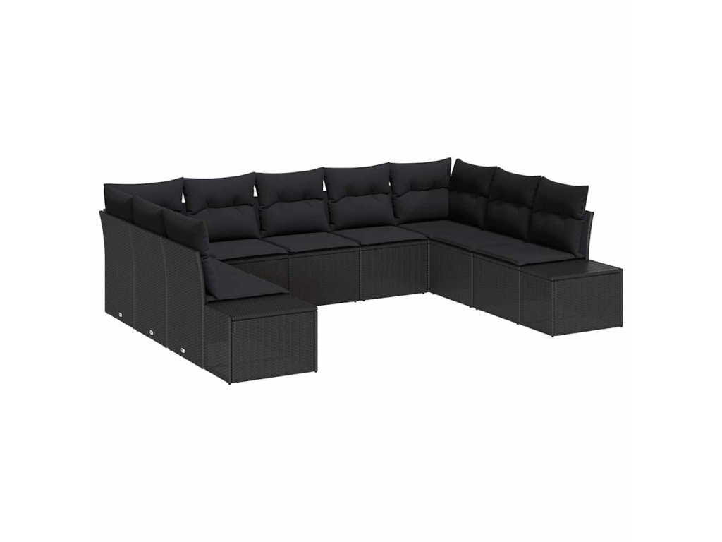 Sada zahradních pohovek s polštářem 9 pcs Černá Poly Ratan