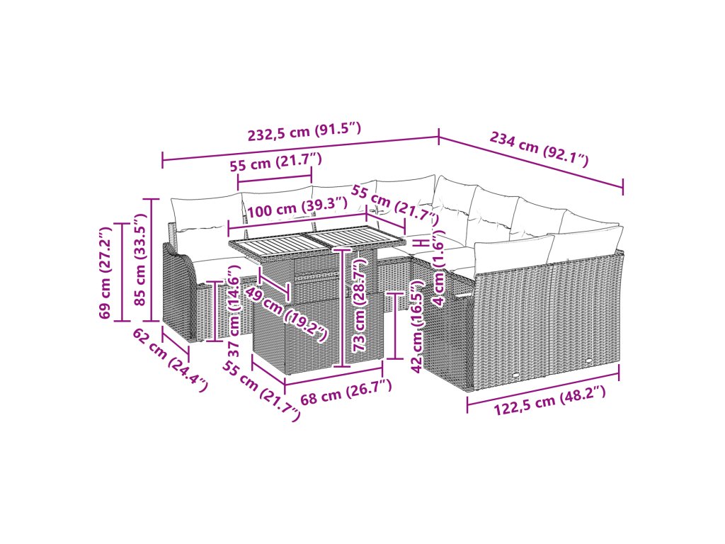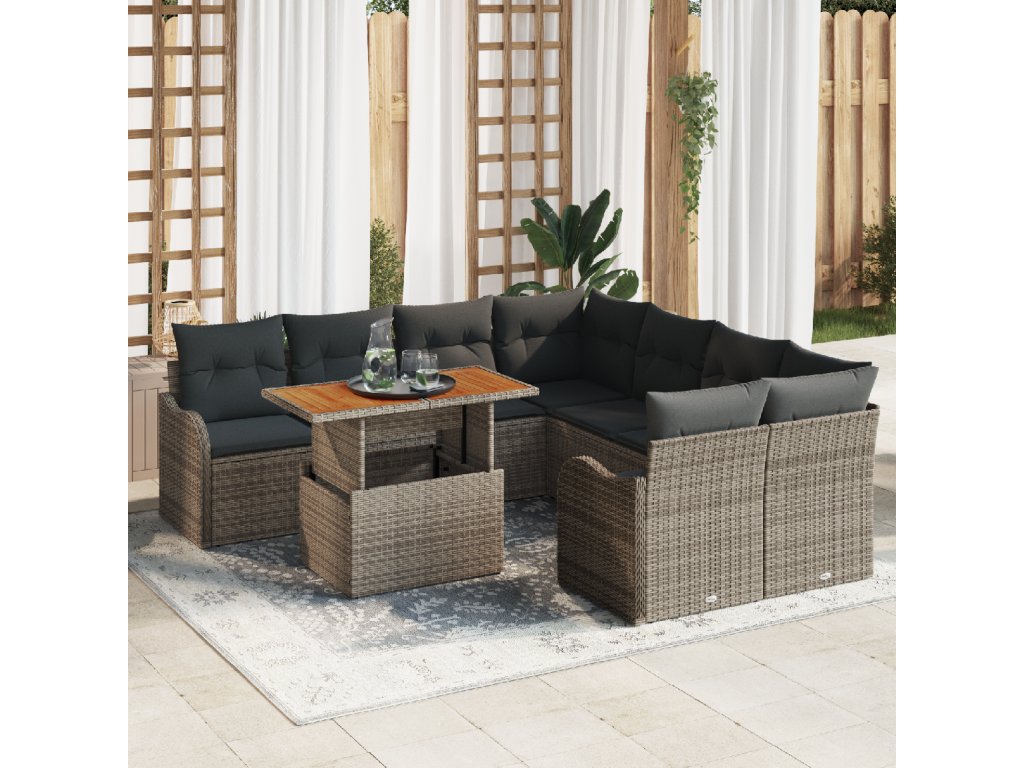 Tento zahradní sofa set skvěle vystihuje moderní venkovní život díky svému elegantnímu vzhledu. Je pohodlný a stylový, vyrobený z odolného polyratanu, který zvládne všechny počasí a nabízí skvělé místo pro rodinu a přátele. Pevné akáciové dřevo dodává příjemný teplý vzhled, což je ideální pro lenošení nebo pořádání setkání. Ať už máte zahradu nebo terasu, jeho modulární design vám umožní měnit uspořádání podle jakéhokoli venkovního prostoru.