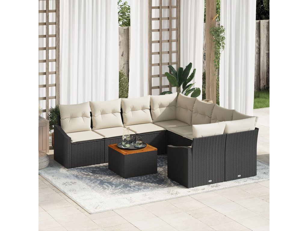 Sada zahradních pohovek s polštářem 9 pcs Černá Poly ratan