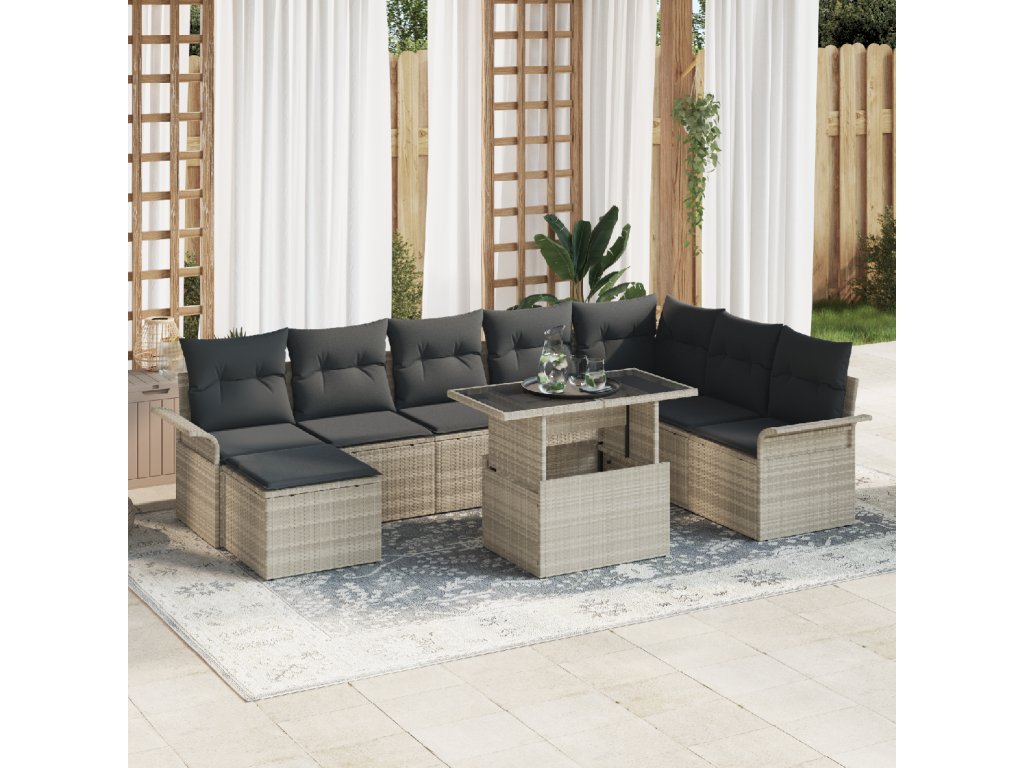 Sada zahradních pohovek 9 pcs Světle šedá Poly ratan