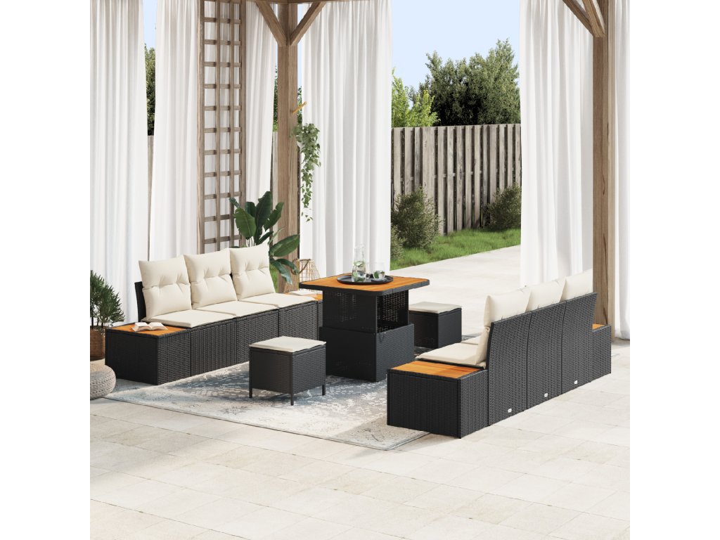 Sada zahradních pohovek 9 pcs Černá polyratan