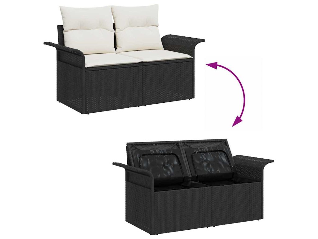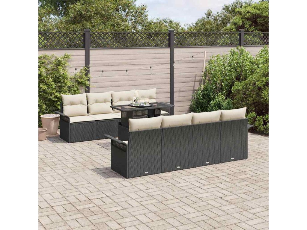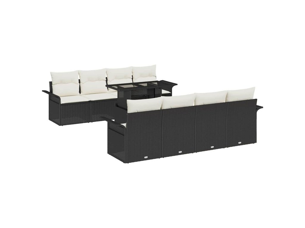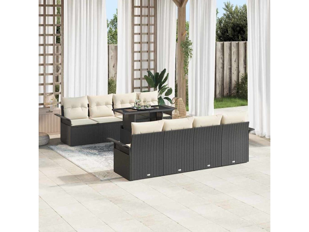 Sada zahradních pohovek s polštářem 9 pcs Černá Poly ratan