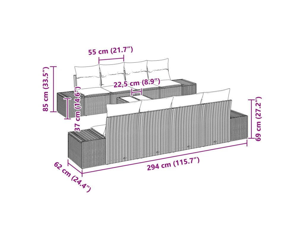 Sada zahradních pohovek s polštářem 7 pcs Šedá polyratan