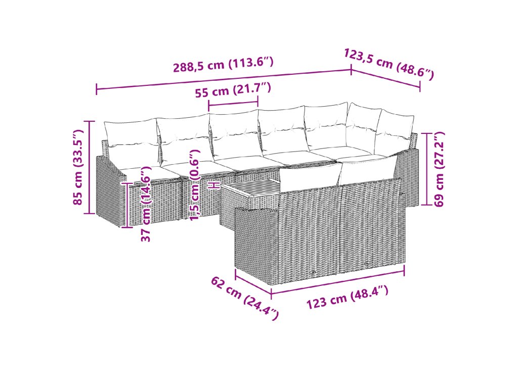 Sada zahradních pohovek s polštářem 9 pcs Béžová Poly ratan