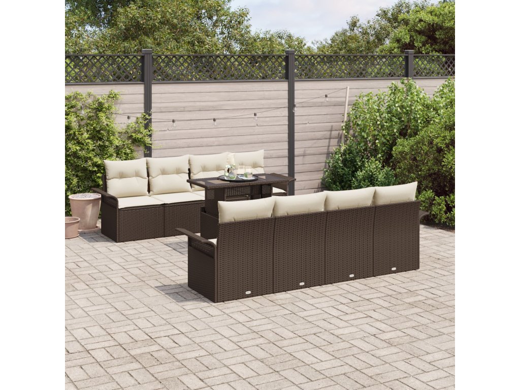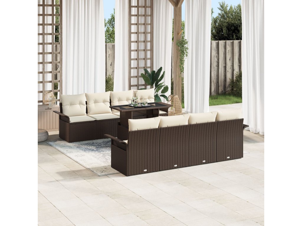 Sada zahradních pohovek s polštářem 9 pcs Hnědá polyratan