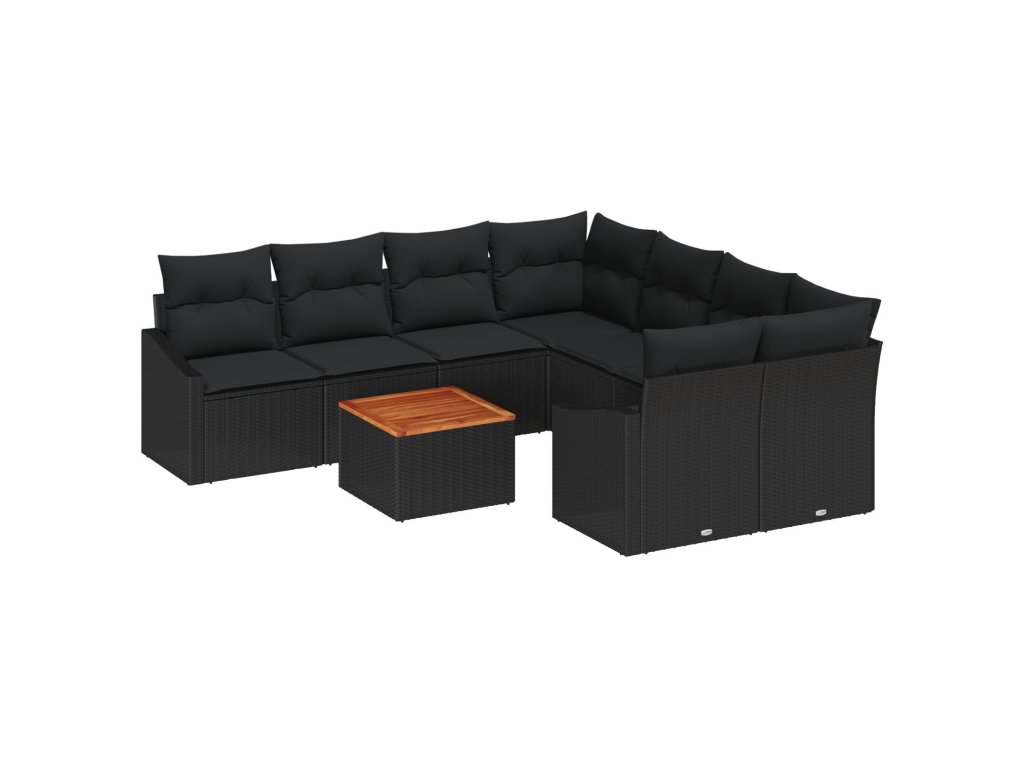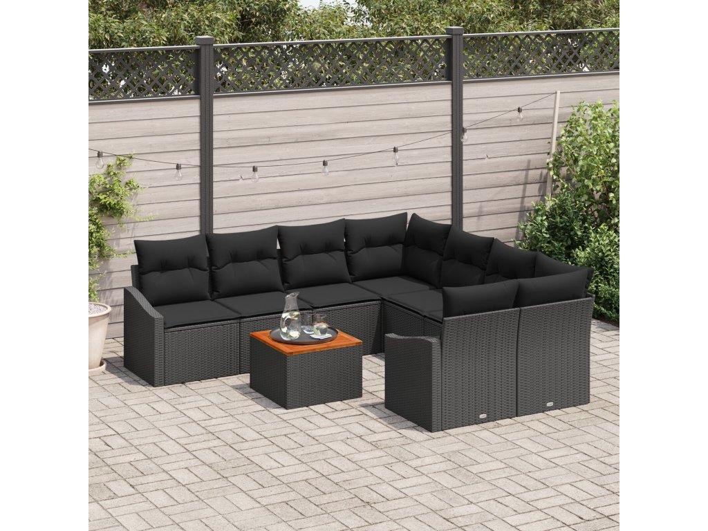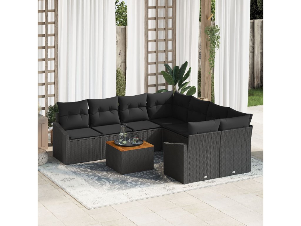 Sada zahradních pohovek s polštářem 9 pcs Černá Poly ratan