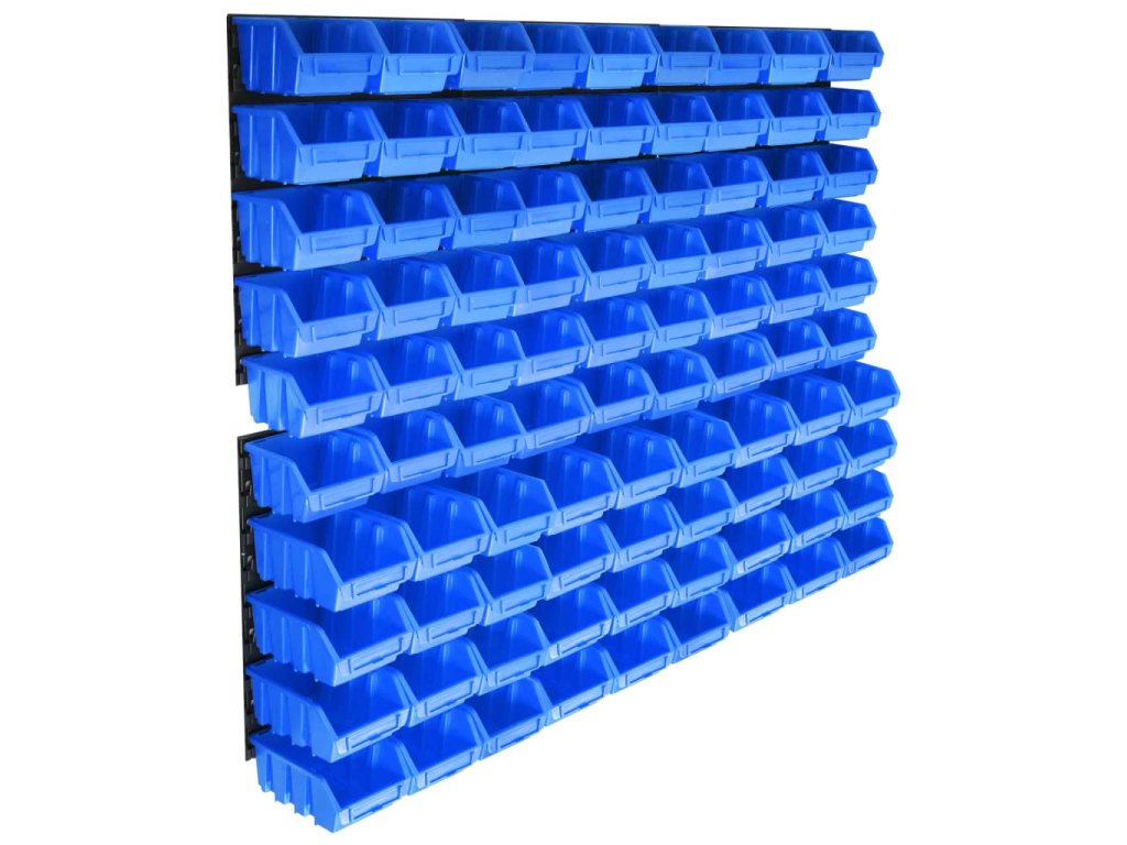 96dílná sada skladovacích zásobníků s nástěnnými díly modrá
