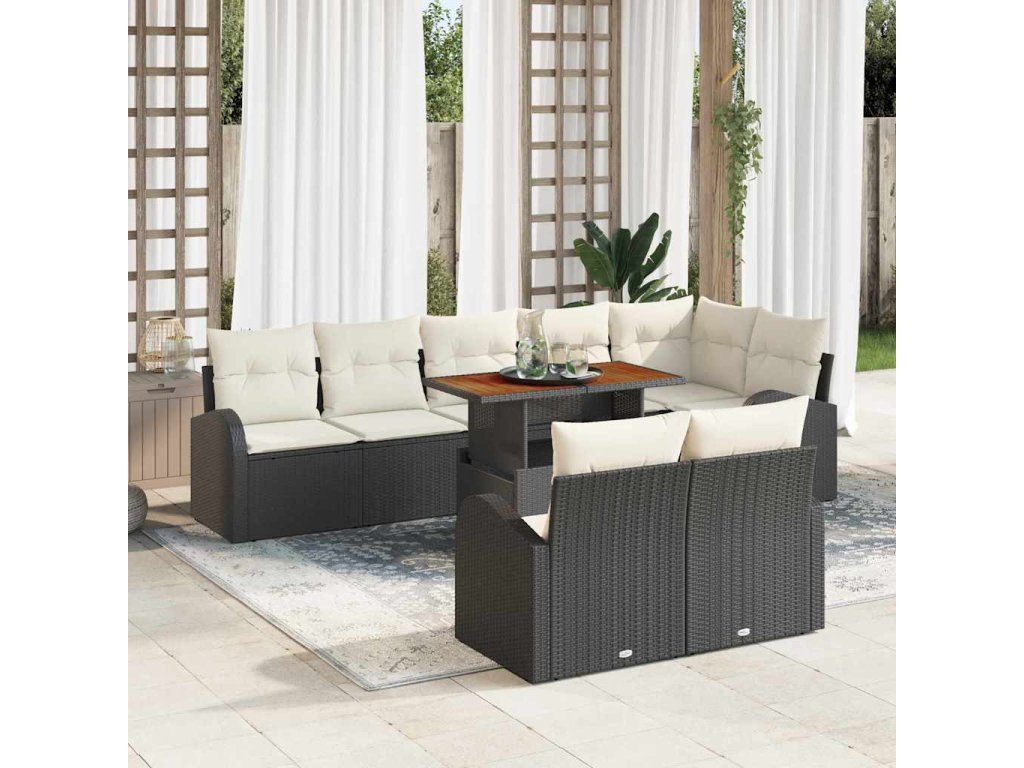 Sada zahradních pohovek s úložištěm 9 pcs Černá Poly ratan
