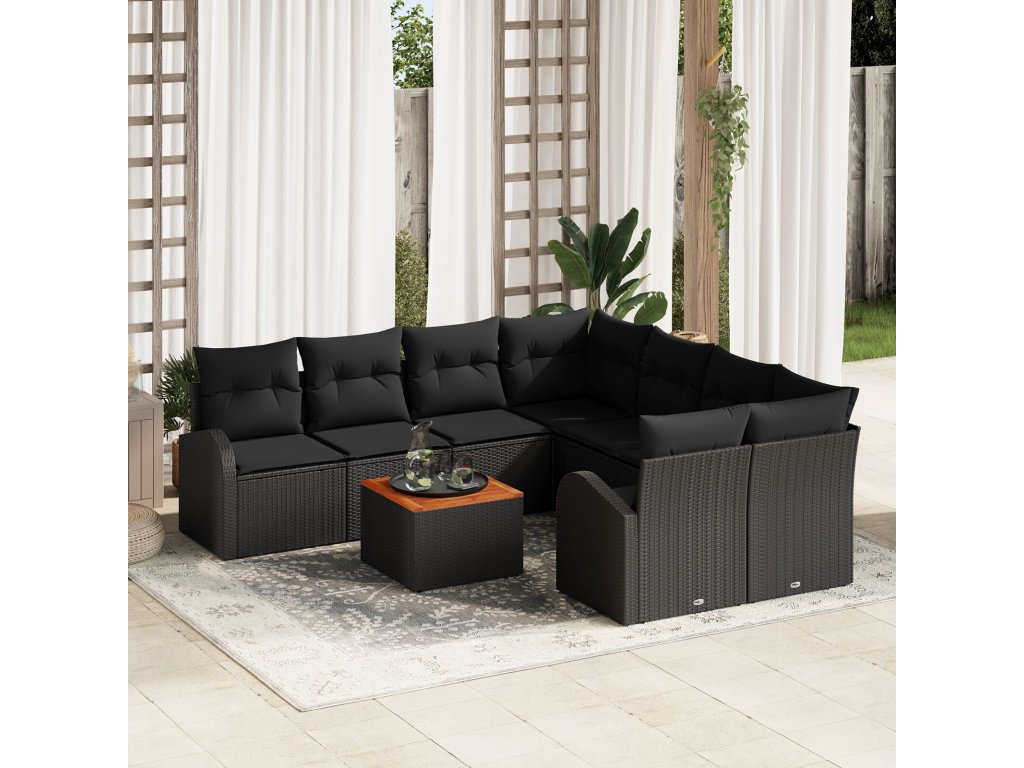 Sada zahradních pohovek 9 pcs Černá Poly ratan