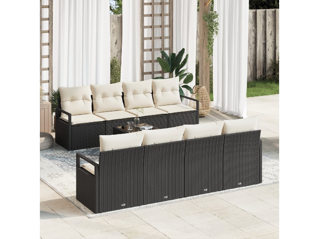 Set pohovek s polštářem 7 pcs Černá a krémová polyratan