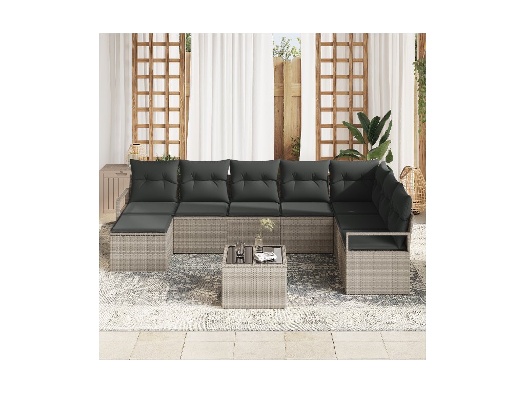 Set pohovek s polštářem s úložištěm 9 pcs Světle šedá polyratan