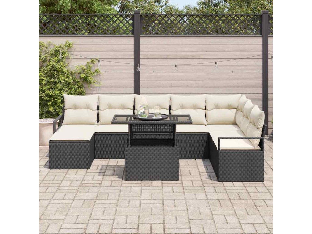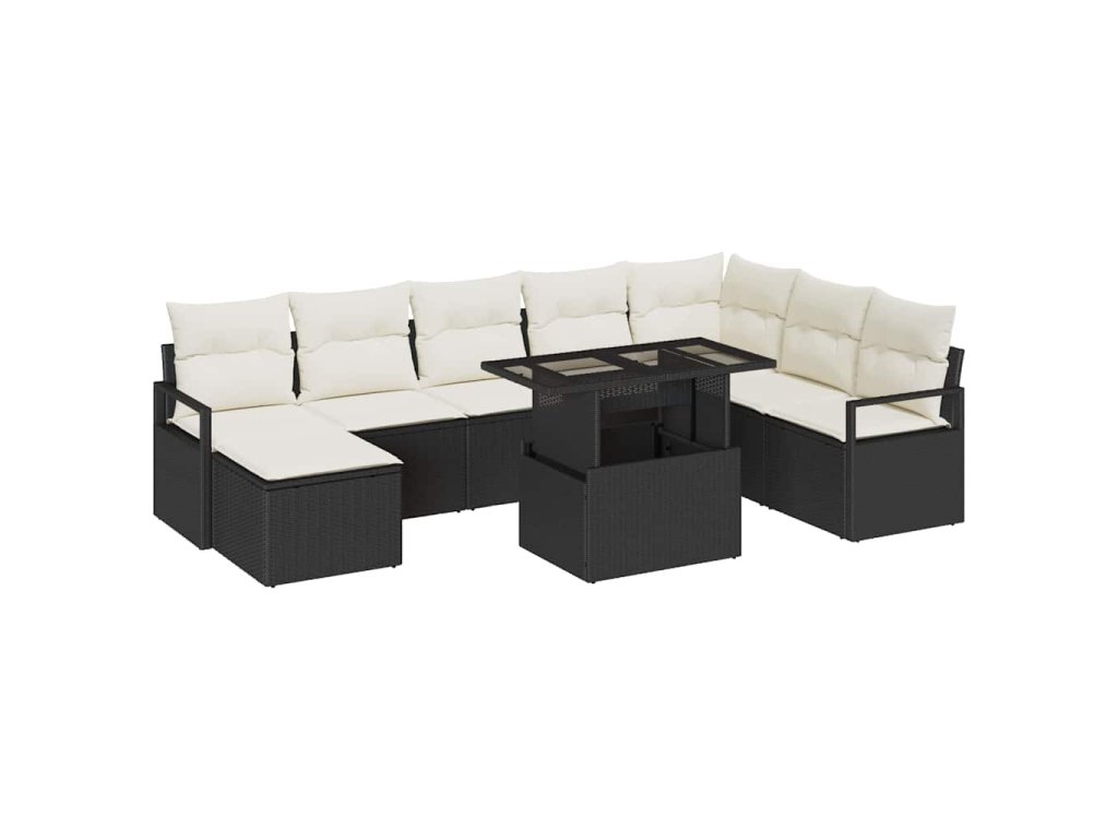Sada zahradních pohovek s úložištěm 9 pcs Černá Poly ratan
