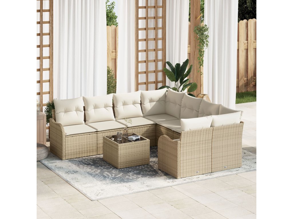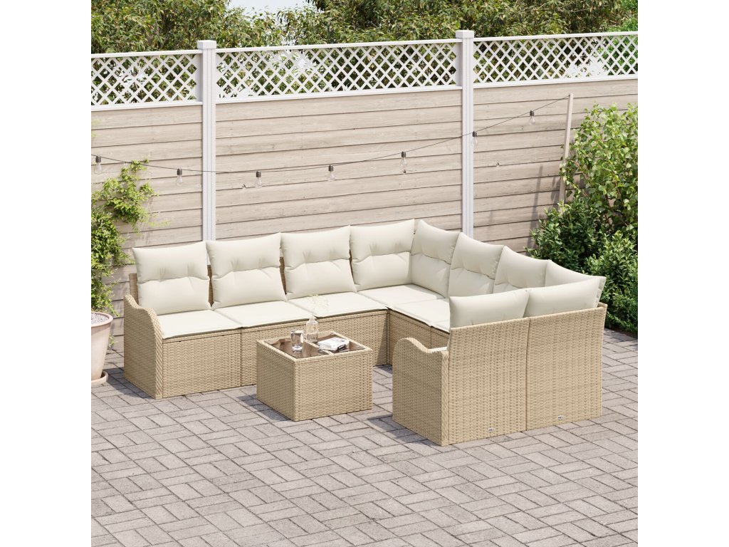 Sada zahradních pohovek s polštářem 9 pcs Béžová polyratan