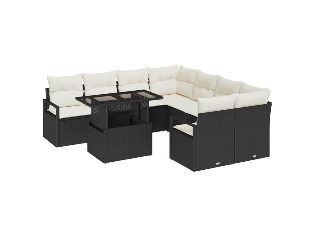 Sada zahradních pohovek s polštářem 9 pcs Černá Poly ratan