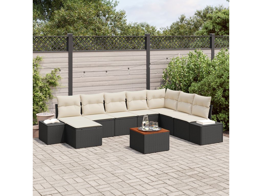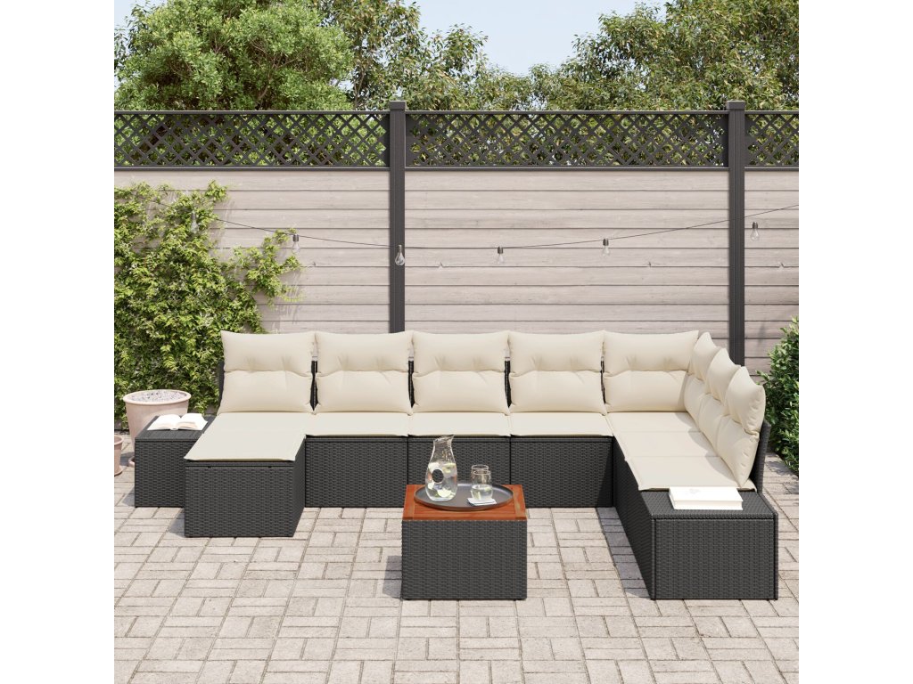 Sada zahradních pohovek s polštářem 9 pcs Černá Poly ratan