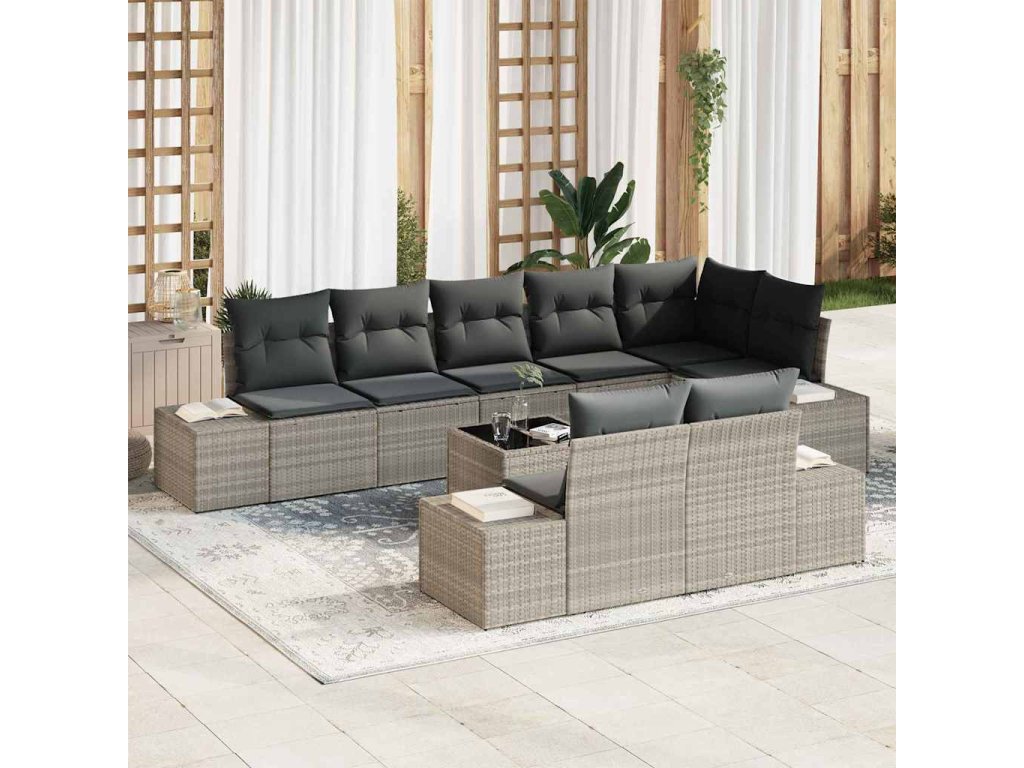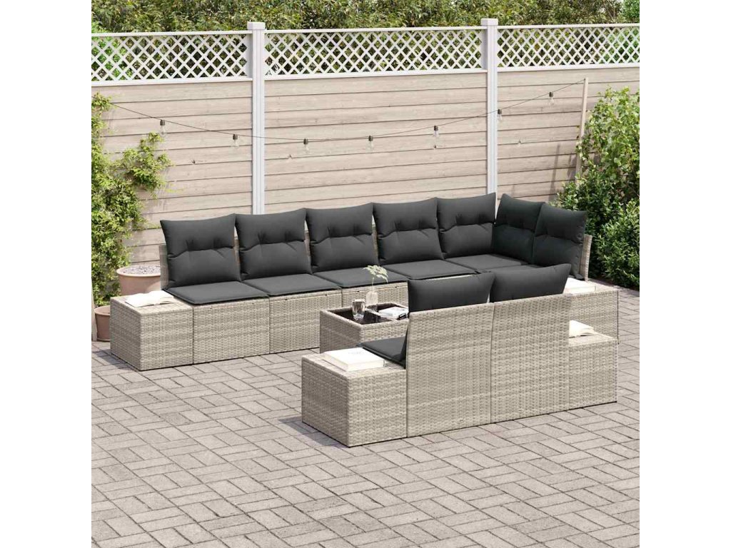 Sada zahradních pohovek s polštářem 9 pcs Světle šedá polyratan
