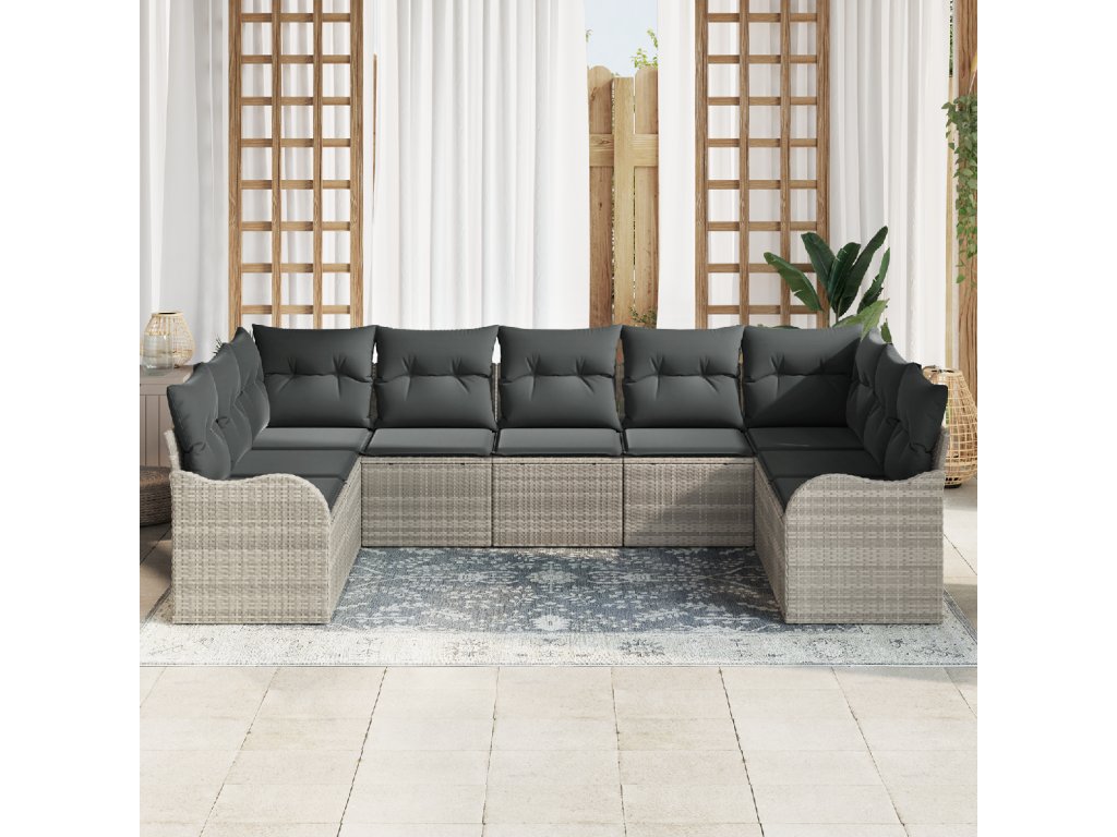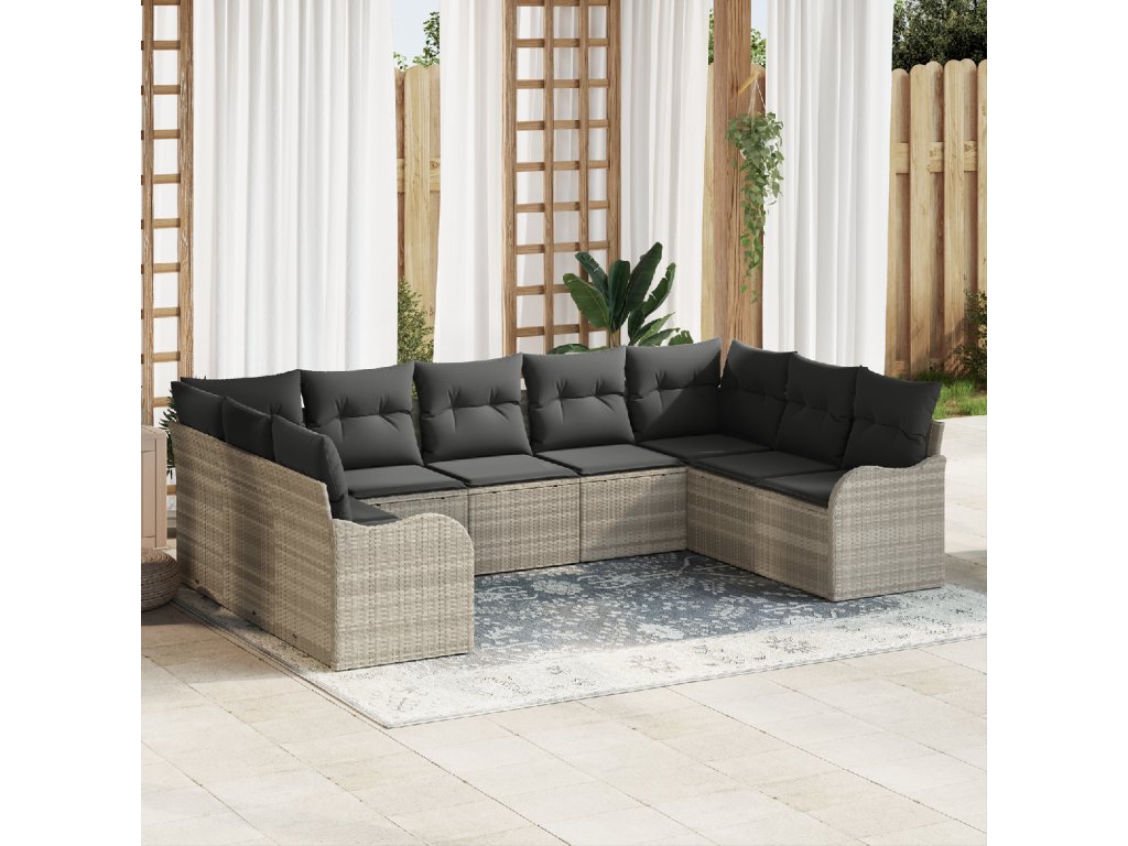 Sada zahradních pohovek s úložištěm 9 pcs Světle šedá polyratan