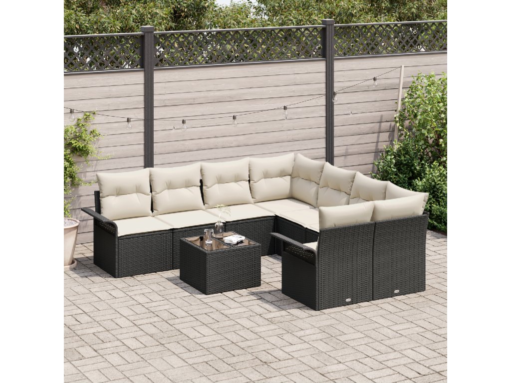 Sada zahradních pohovek s polštářem 9 pcs Černá a krémová