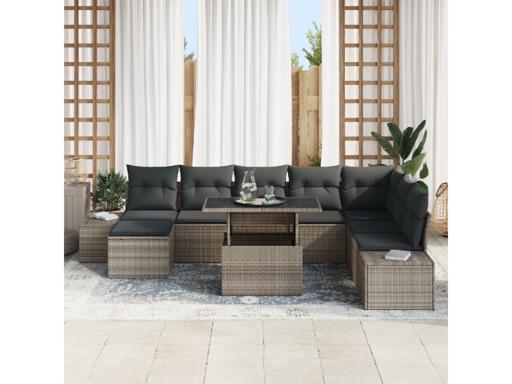 Sada zahradních pohovek s polštářem 9 pcs Šedá polyratan