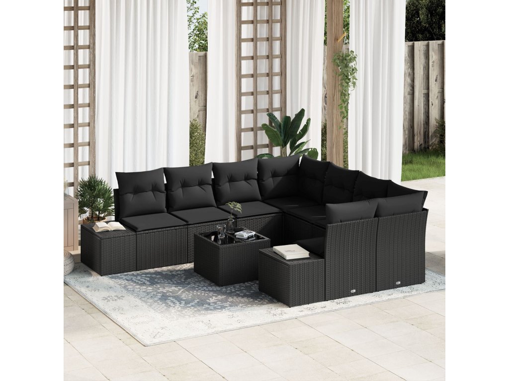 Sada zahradních pohovek s polštářem 9 pcs Černá polyratan