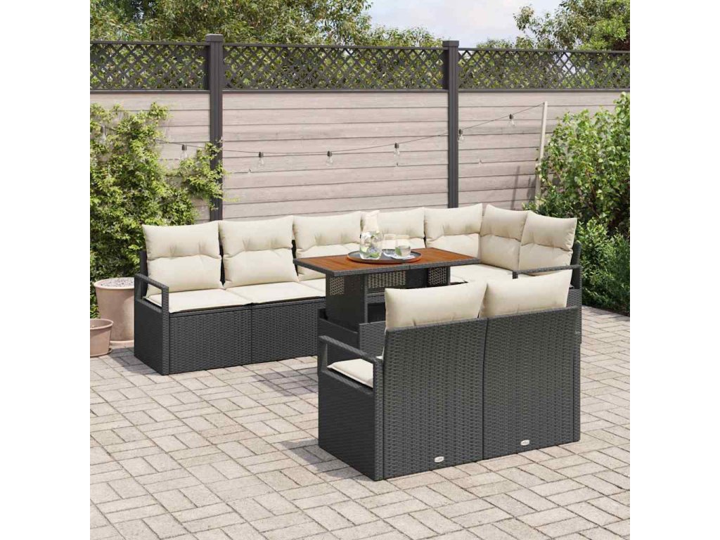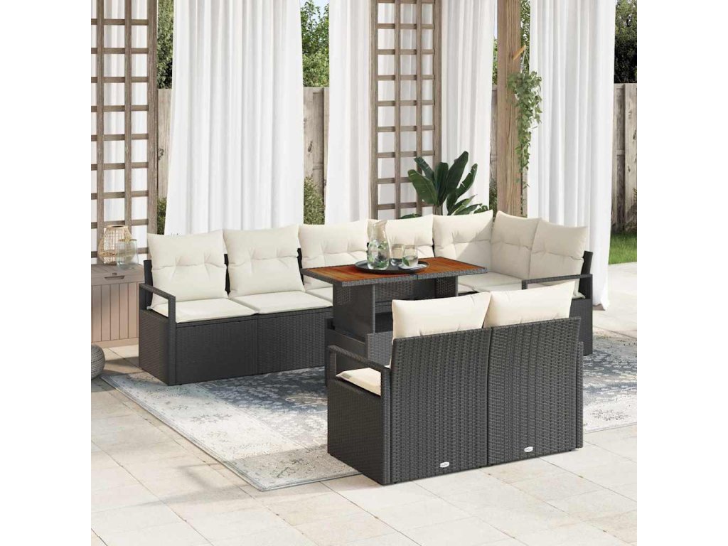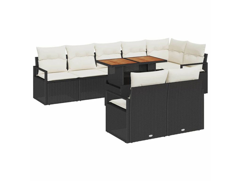 Sada zahradních pohovek s úložištěm 9 pcs Černá Poly ratan
