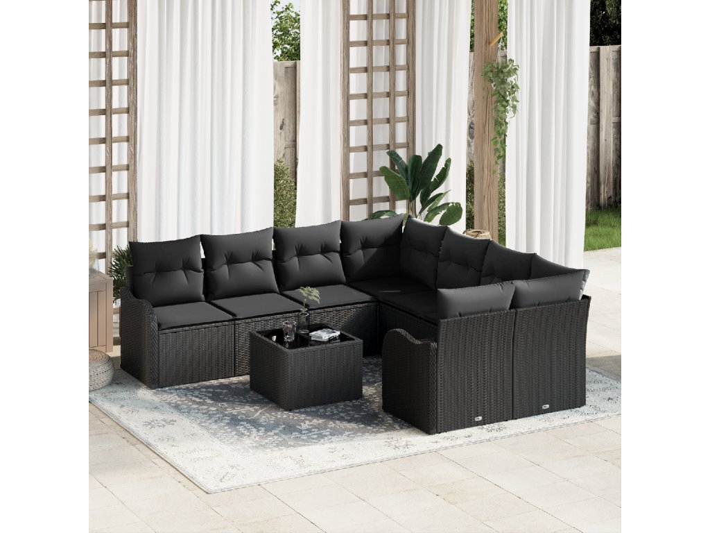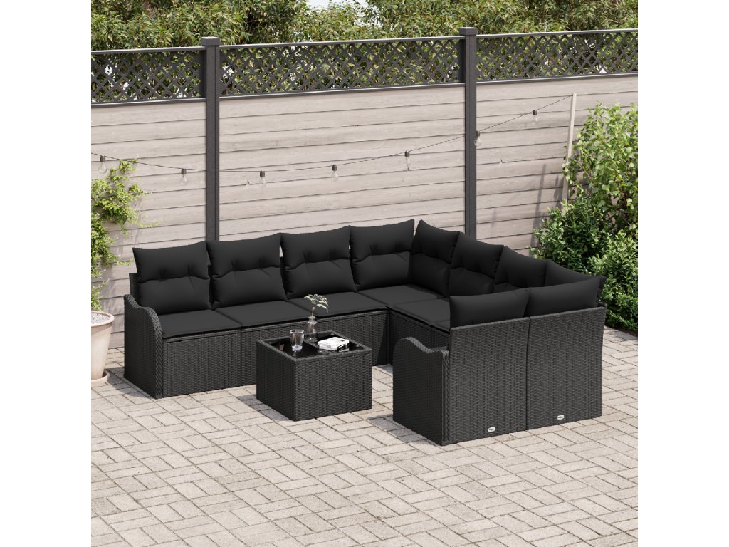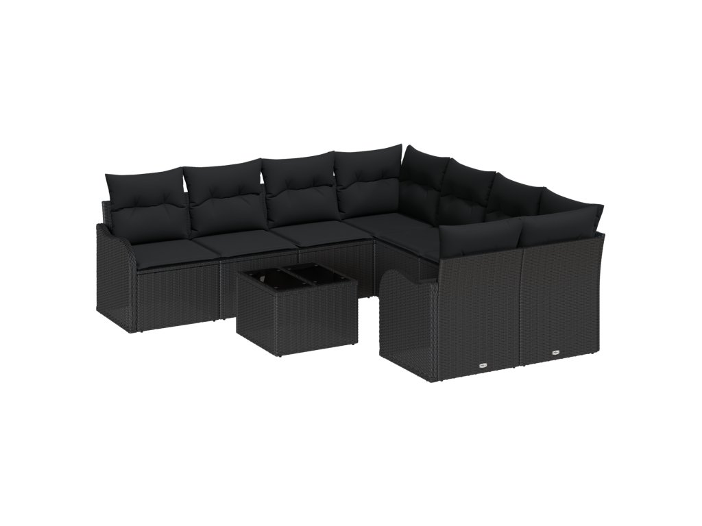 Sada zahradních pohovek 9 pcs Černá Poly ratan a ocel a sklo