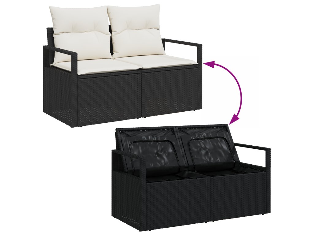 Set pohovek s polštářem 9 pcs Černá a krémová polyratan