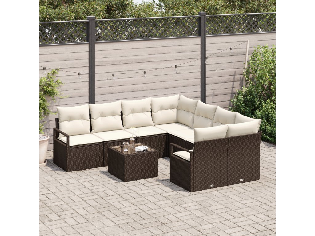 Set pohovek s polštářem 9 pcs Hnědá a krémová polyratan