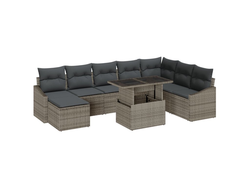 Set pohovek s polštářem s úložištěm 9 pcs Šedá polyratan